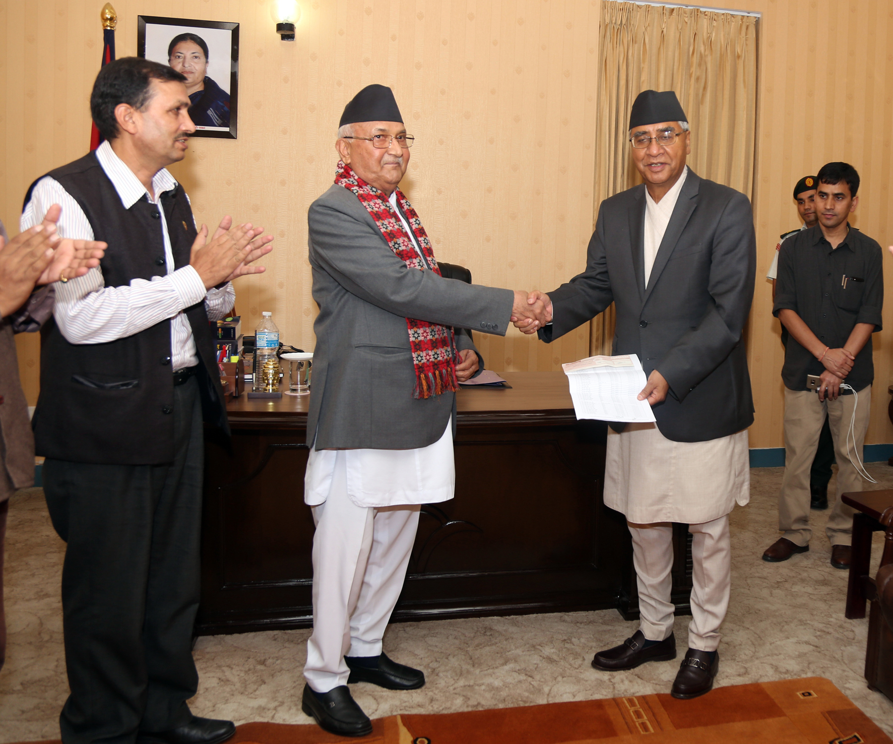 एमालेका अध्यक्ष केपी शर्मा ओलीसहितका नेताले प्रधानमन्त्री शेरबहादुर देउवालाई आज प्रधानमन्त्री एवम् मन्त्रिपरिषद्का कार्यालय सिंहदरबारमा भेट गरी एमालेका सांसदहरुका तर्फबाट संकलन भएको रु ९९ लाख ७८ हजार ३९० को चेक हस्तान्तरण गर्नुभएको हो । तराई मधेसका बाढीपीडितका लागि सहयोग गर्न सो रकम हस्तान्तरण गरिएको एमालेले जनाएको छ ।