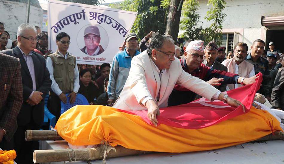 चितवन ६, मंसिर । नेकपा (माओवादी केन्द्र) का केन्द्रीय सल्लाहकार एवं जनवादी गायक खुशीराम पाख्रिनको पार्थिव शरीरलाई आज बिहान माओवादी पार्टीे कार्यालय चितवनमा राखेर अन्तिम श्रद्धाञ्जलि अर्पण गरिएको छ ।