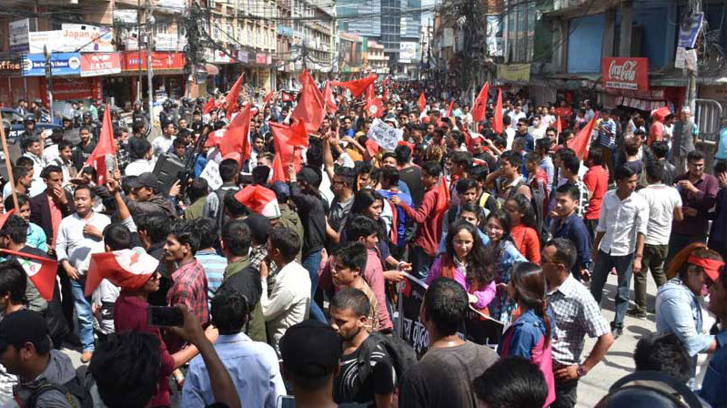 जेठ २७, काठमाडौँ । नेपाल विद्यार्थी (नेवि) संघले आज राजधानीमा सरकारविरुद्ध प्रदर्शन गरेको छ ...